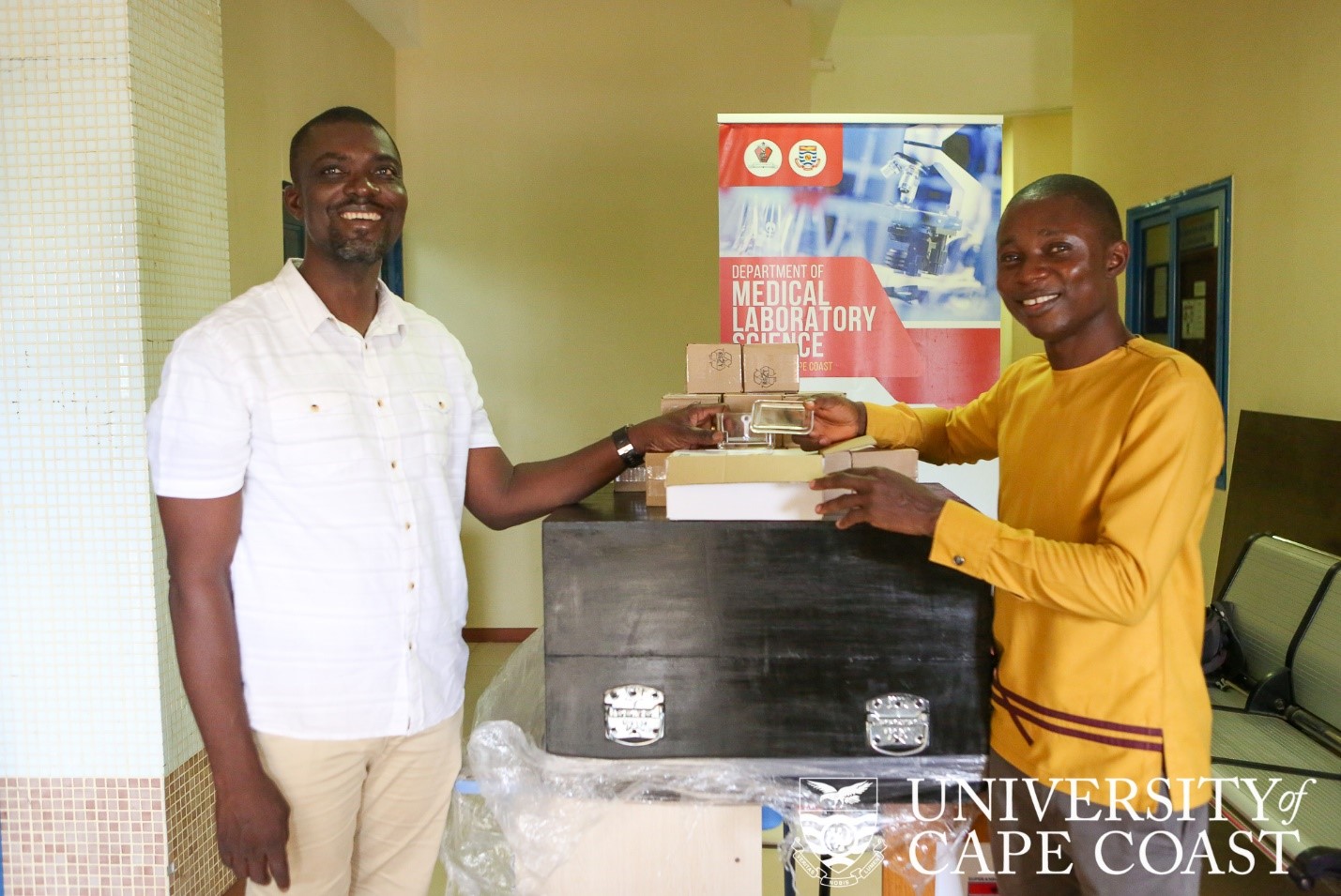 A Senior Lecturer at the Department of Medical Laboratory Science at the University of Cape Coast, Dr. David Larbi Simpong, has donated a laptop, two Rotary Microtomes worth €10,000 to the Department of Medical Laboratory Science.