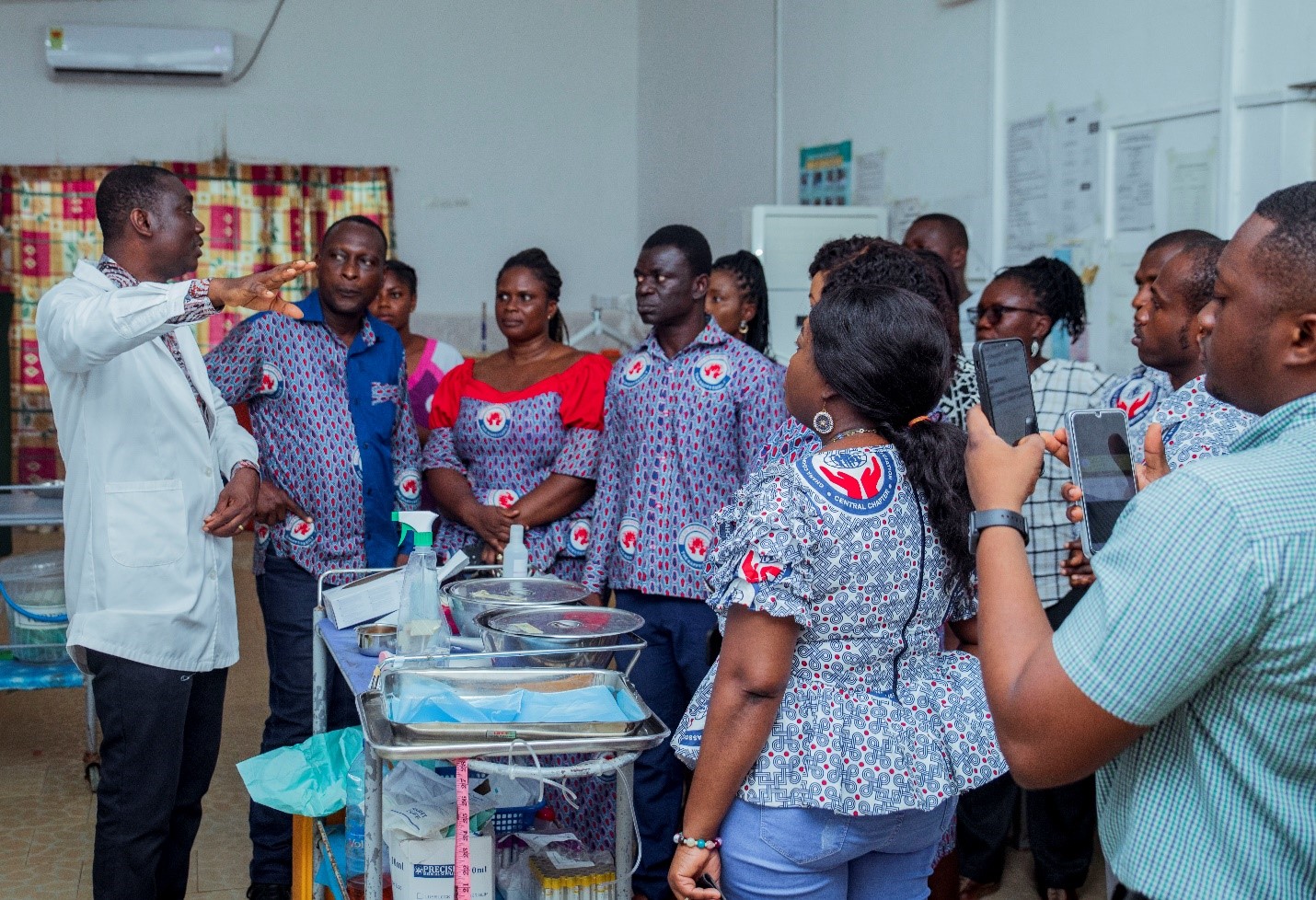 Dr. James kojo Prah conducting the delegation from UCC Credit Union around the maternity block
